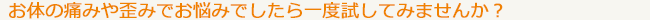 お体の痛みや歪みなどでお悩みの方は、ぜひお試しください。